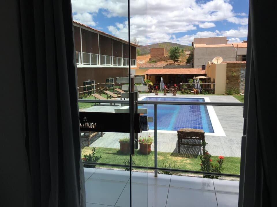 Os quartos trazem uma charmosa combinação entre o rústico e o moderno, com varanda e vista para a área da piscina, oferecendo conforto e estilo em cada detalhe. Cada detalhe foi pensado para proporcionar conforto e bem-estar aos nossos hóspedes.