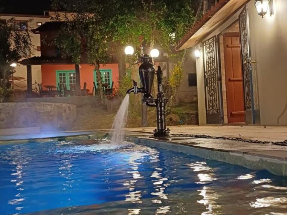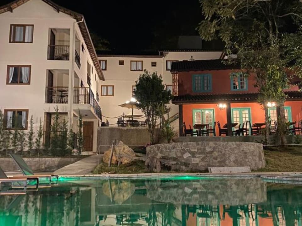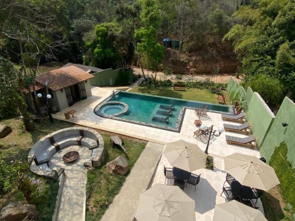 - A Pousada Villa Manso, conta ainda com vasto espaço verde, com mais de 10.000 m², os hóspedes poderão desfrutar de belíssimas paisagens, jardins, firepit (lareira externa), mesas com ombrelone e solarium. A piscina é maravilhosa, possui prainha, raia, spa, borda infinita e é toda revestida em pedra hijau. A pousada oferece um delicioso café da manhã e restaurante que funciona de quinta à domingo. Na belíssima recepção tem uma lareira de aço naval com madeira, que no frio, torna-se um local ideal para degustar um bom vinho e se aquecer à beira do fogo. Além disso tudo, possui estacionamento gratuito para seus hóspedes dentro da propriedade.
