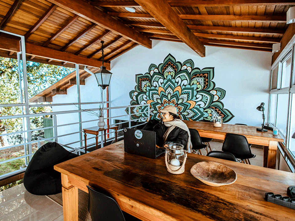 Saia da rotina e junte-se aos nômades digitais em nosso espaço de trabalho compartilhado. Perfeito para inspirar criativos e empreendedores com Wi-Fi de alta velocidade, em meio a natureza.