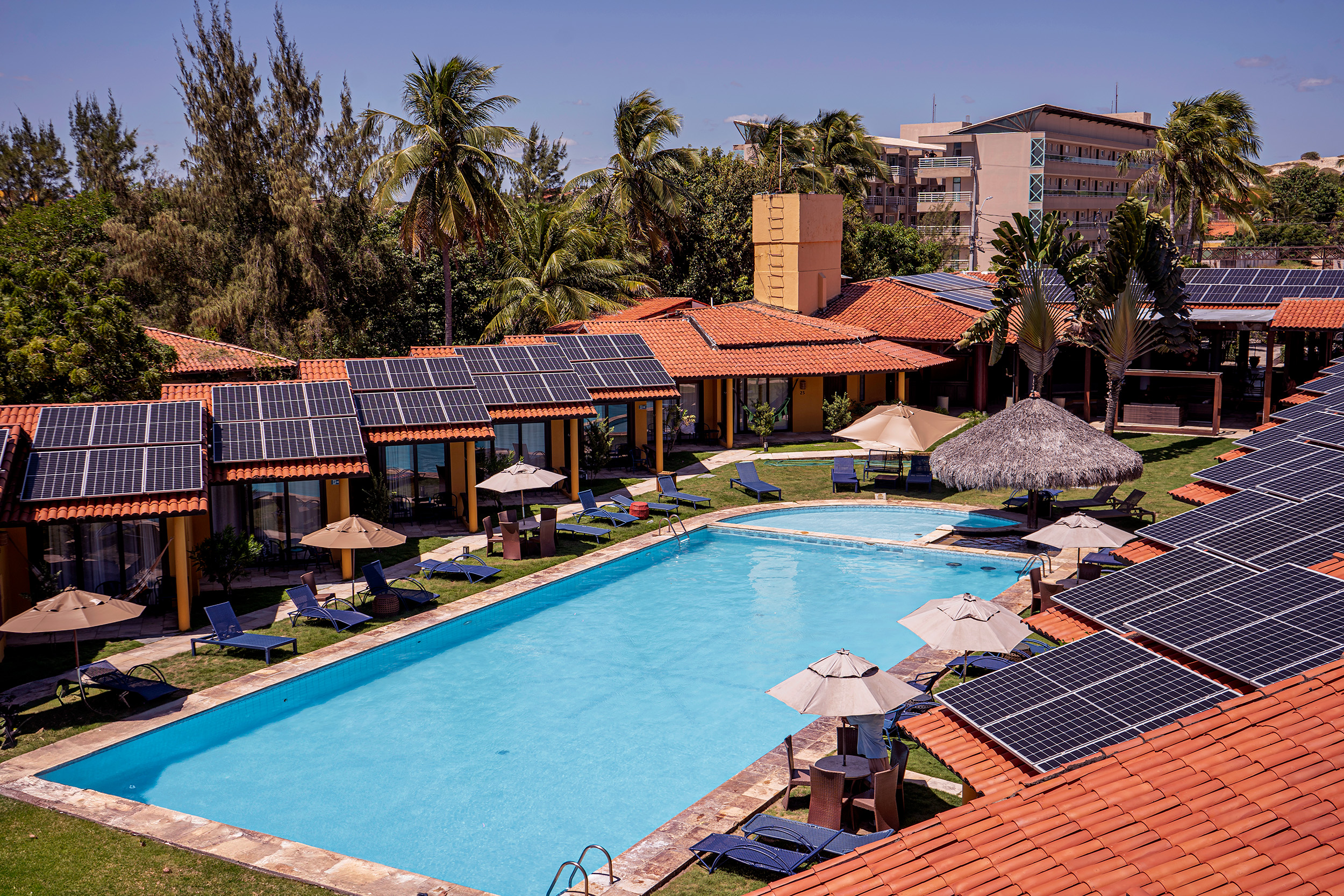 Nosso hotel é frente mar e conta com piscina, jacuzzi, sauna, área de lazer com jardim tropical, escolinha de kitesurf, restaurante próprio, bar, estacionamento gratuito, recepção 24 horas.