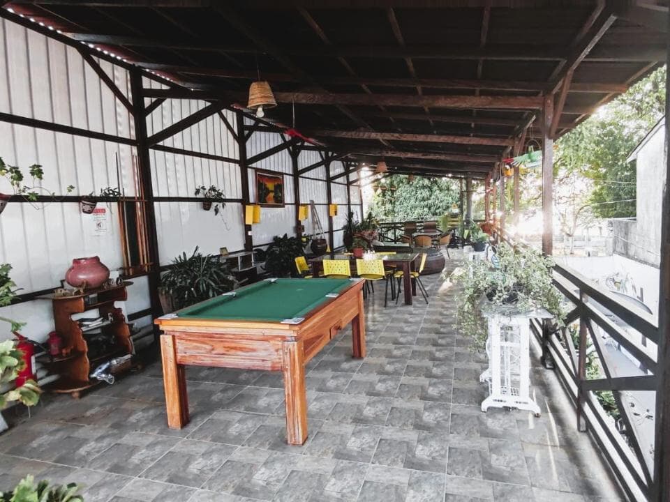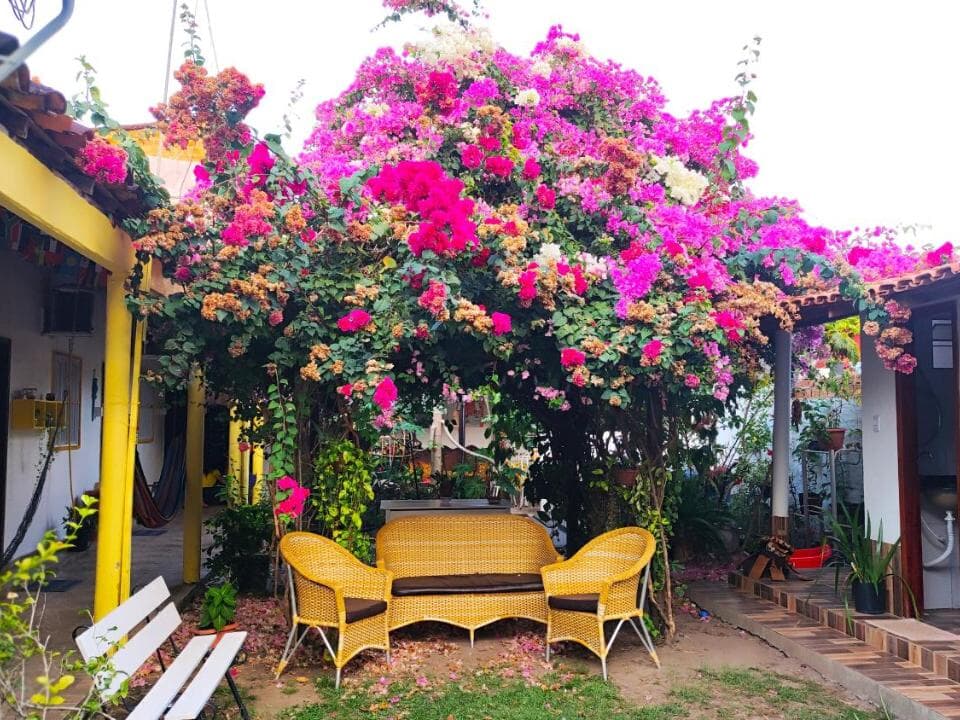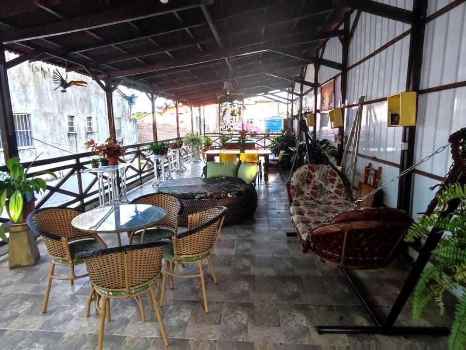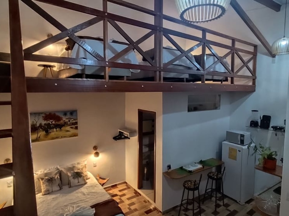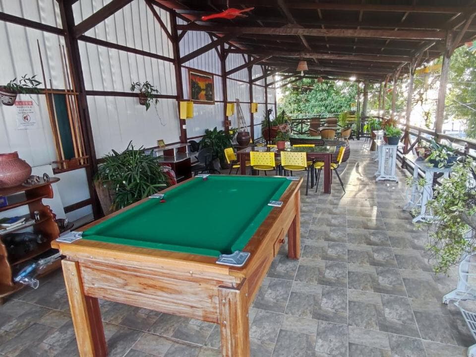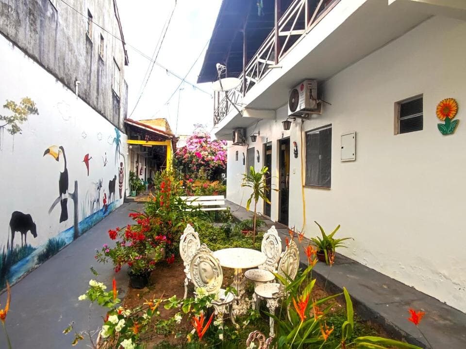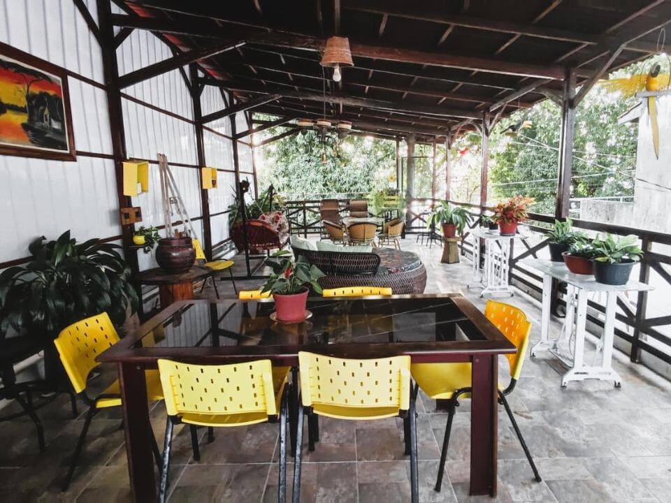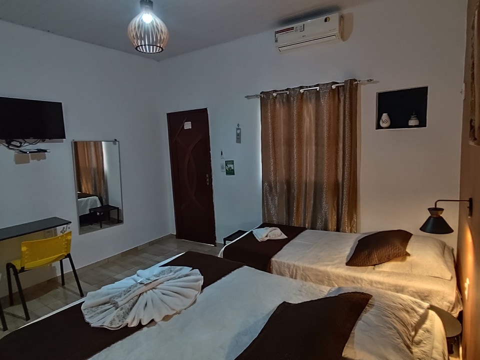 Contamos com suítes completas, equipadas com ar-condicionado, chuveiro elétrico, frigobar e TV a cabo, além de uma área de convivência encantadora, com jardim, sala de estar e cozinha compartilhada — perfeitas para relaxar após um dia de aventuras.