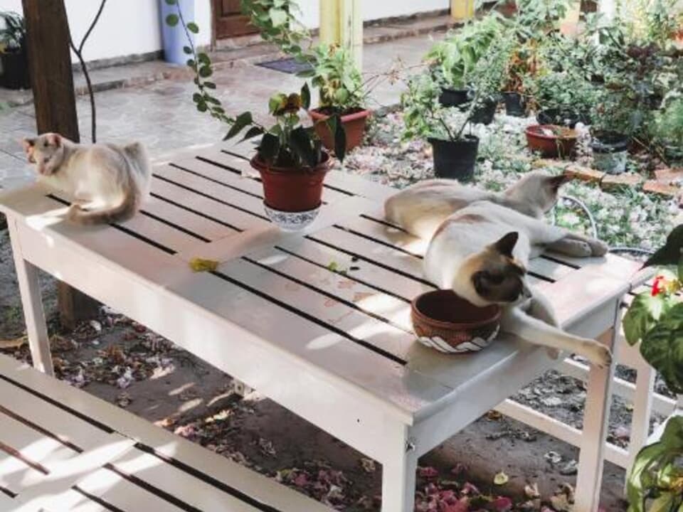 Além disso, nossa pousada é um lar acolhedor também para os animais: aqui vivem 2 gatos adotados, dóceis e amigáveis, que fazem parte do nosso ambiente tranquilo e cheio de carinho.