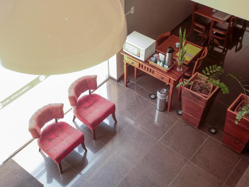 No lobby, encontramos a recepção informatizada, com recepcionistas treinados e prontos para atender a todas as necessidades dos nossos hóspedes.