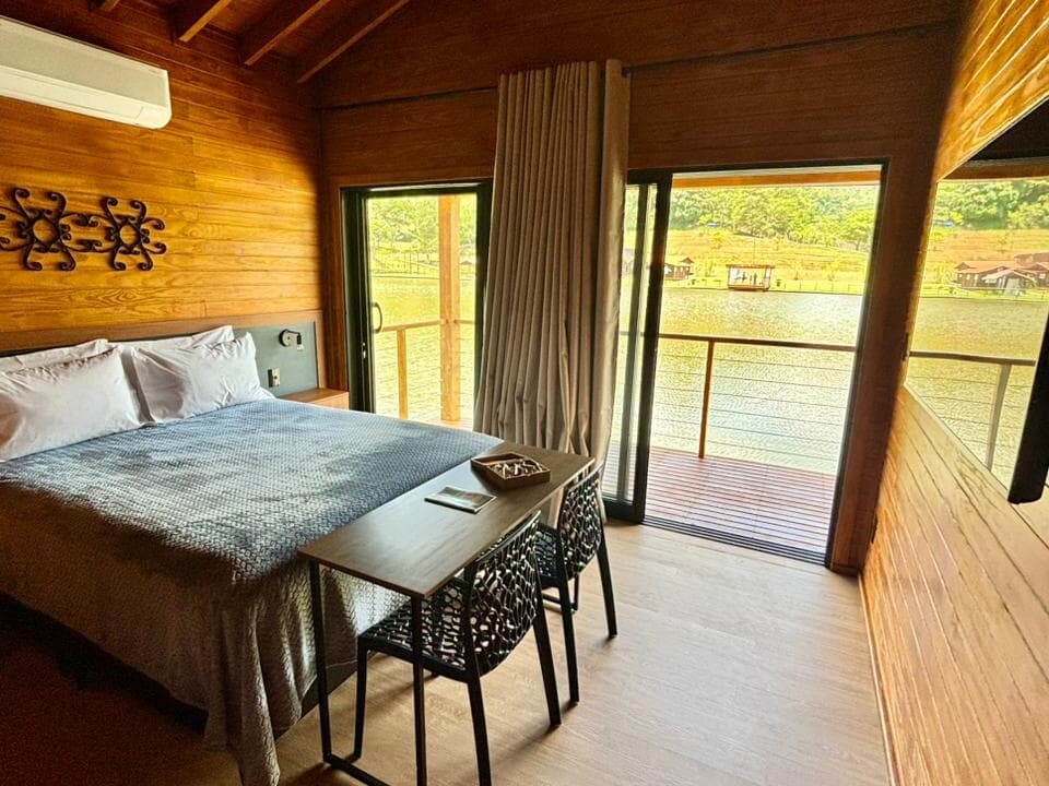 Entre lagos, mirante, jardim secreto e trilhas rodeadas por árvores, a Pousada Reserva do J abriga seis chalés incríveis para casais, projetados para oferecer conforto, privacidade e uma atmosfera romântica, cada chalé conta com varanda exclusiva com vista para o lago, onde o som da natureza e o pôr do sol tornam cada momento inesquecível.