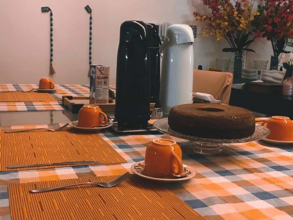- Oferecemos uma variedade de itens, incluindo bolos, sucos, grãos, chás, geleias, além de opções regionais como café, ovo, tapioca e cuscuz.