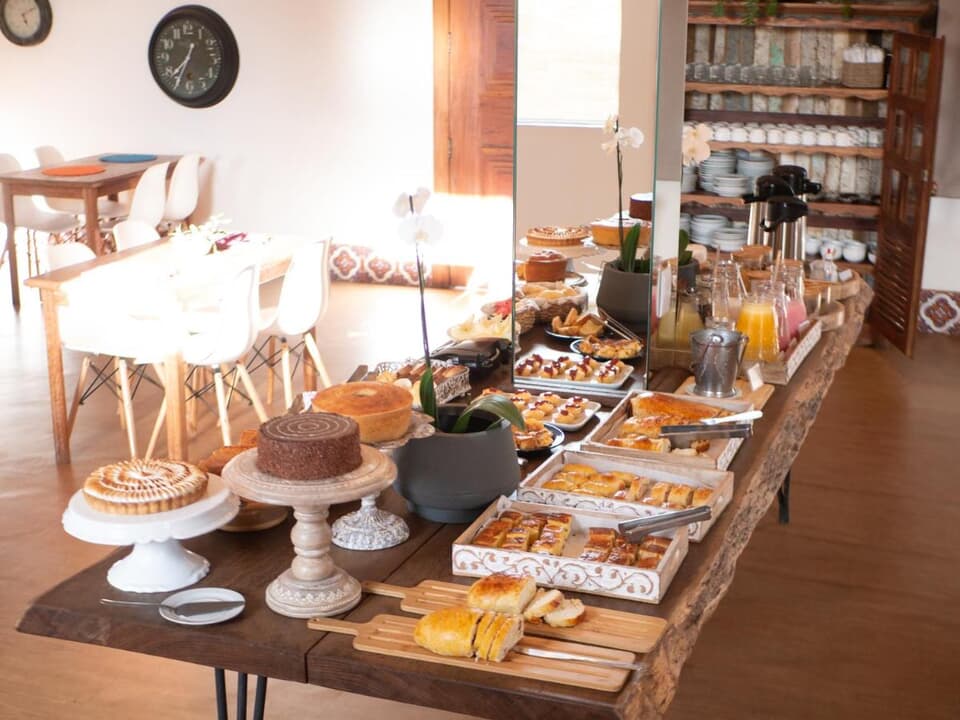 Café da manhã preparado com carinho, ingredientes frescos e muitos quitutes mineiros todos os dias