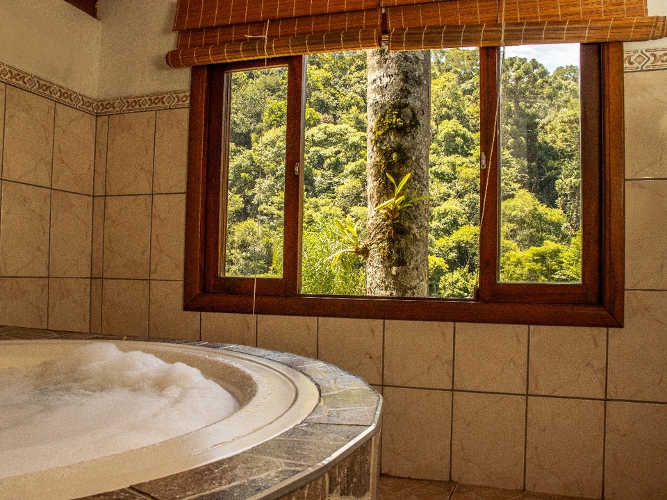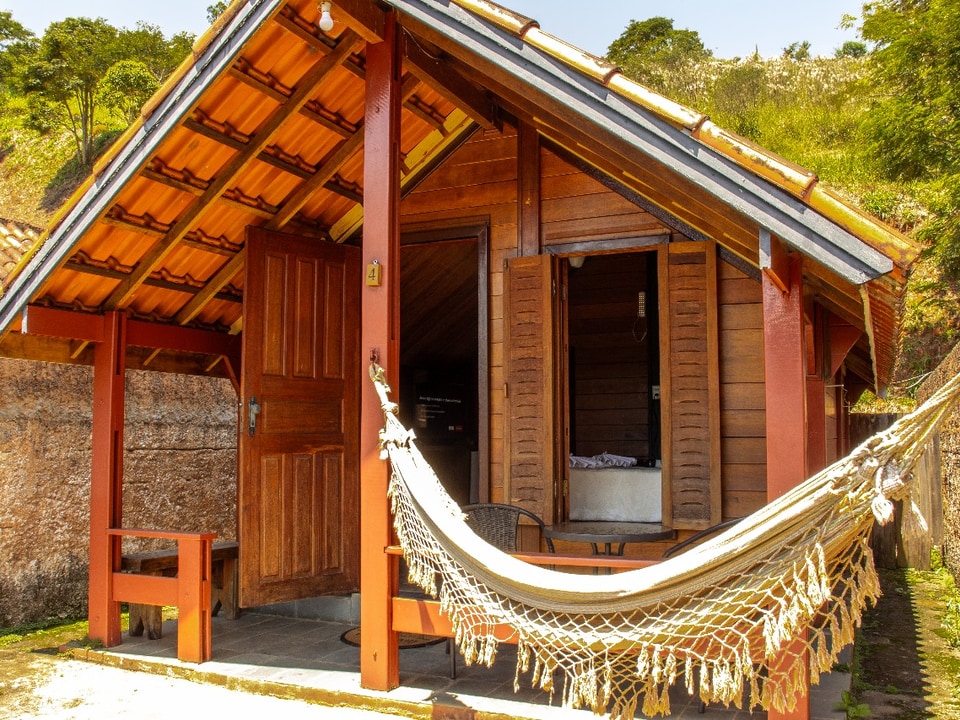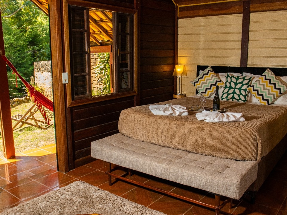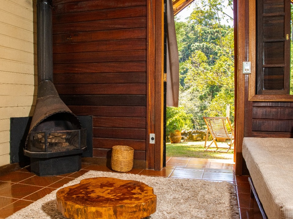 Os hóspedes têm acesso a duas cachoeiras dentro da propriedade, perfeitas para banho e contemplação, além de duas trilhas exclusivas. A vista para a mata e o clima de montanha tornam a estadia ainda mais especial.