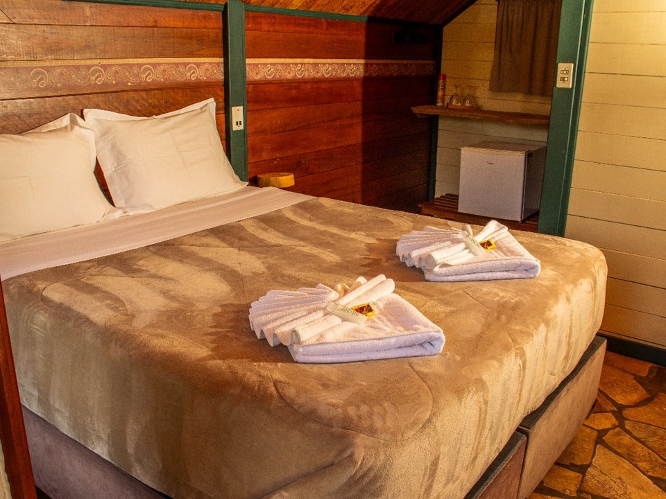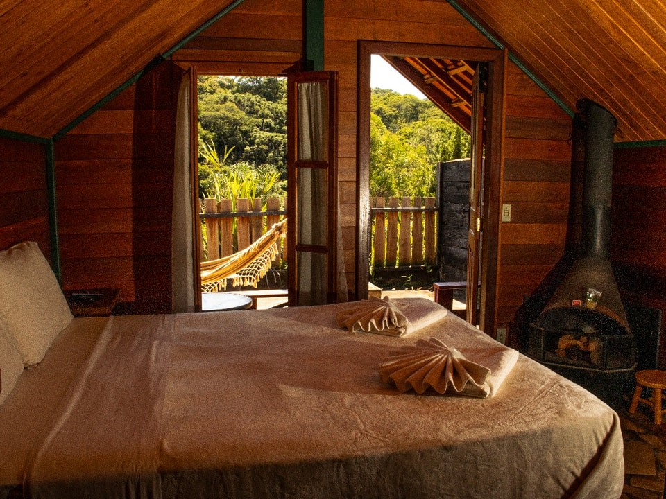 Todas as acomodações contam com lareira, cama queen, Smart TV, frigobar e varanda privada, com opção de decoração romântica para casais. Algumas unidades incluem hidromassagem, cercado privativo e fogo de chão, oferecendo ainda mais conforto e exclusividade.
