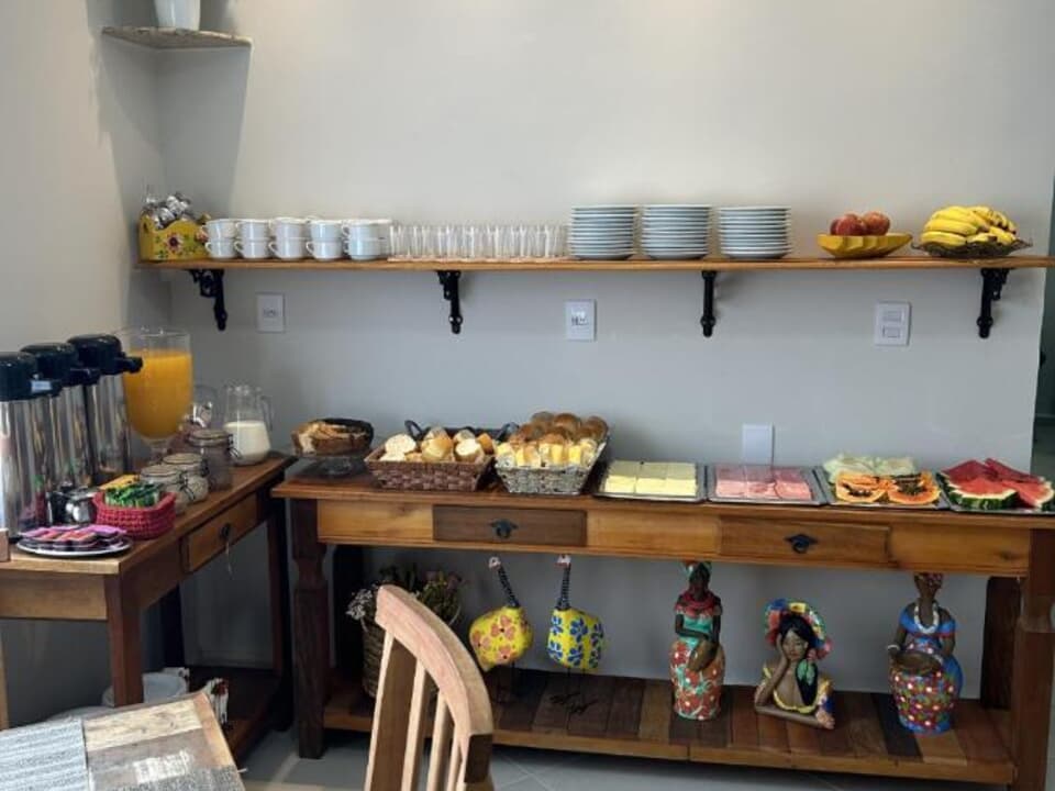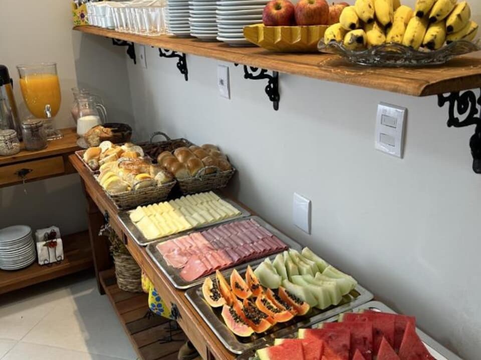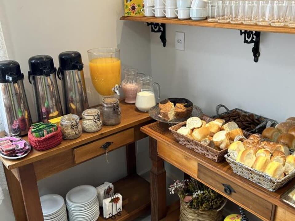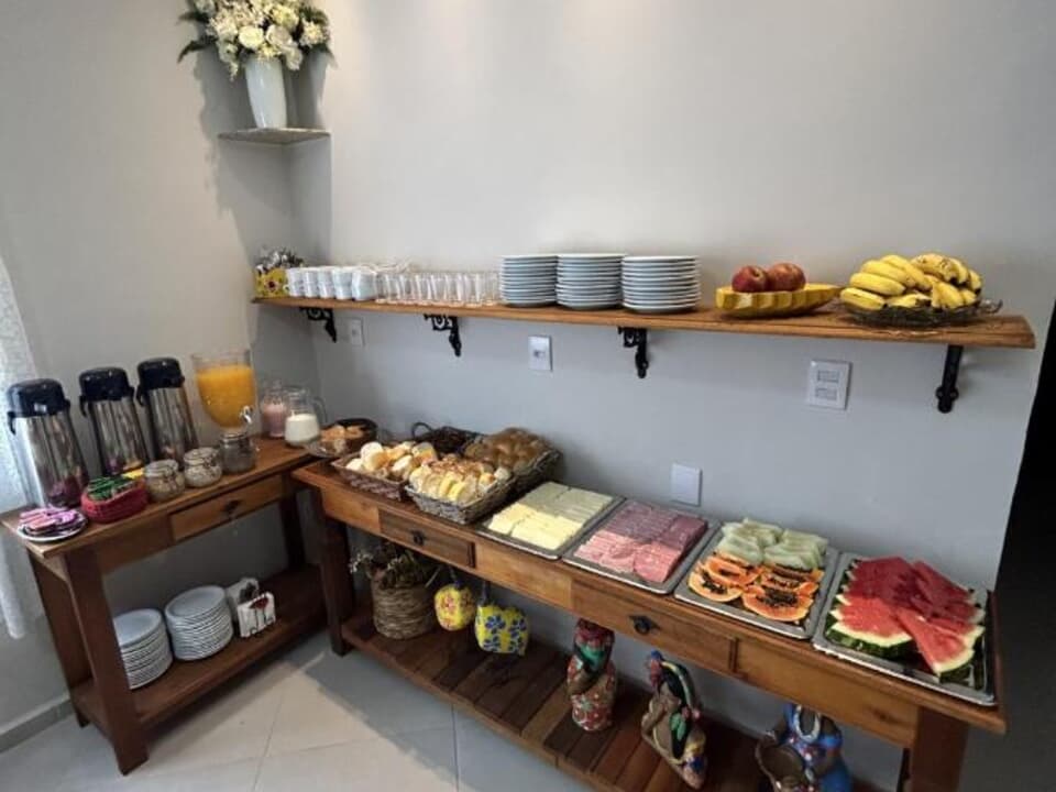 Todas as manhãs, nossos hóspedes são recebidos com um delicioso café da manhã no sistema buffet, preparado com carinho, oferecendo variedade e aquele sabor caseiro que faz toda a diferença.