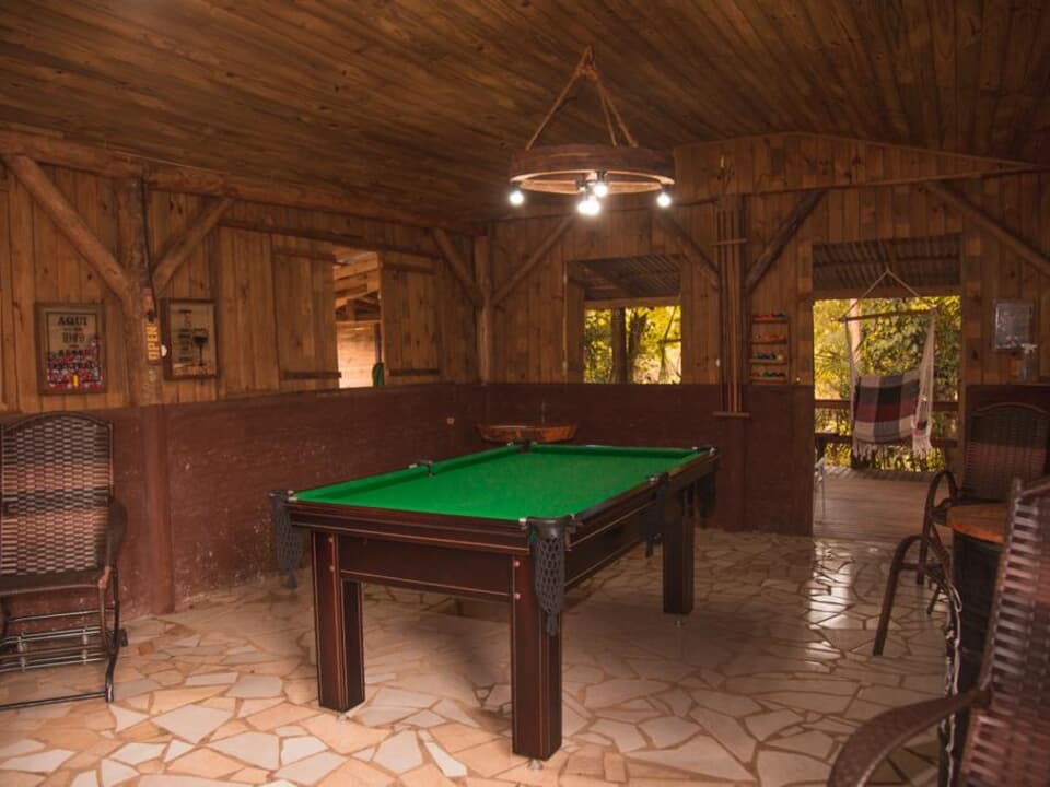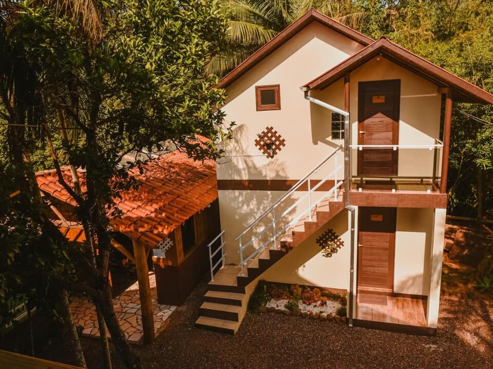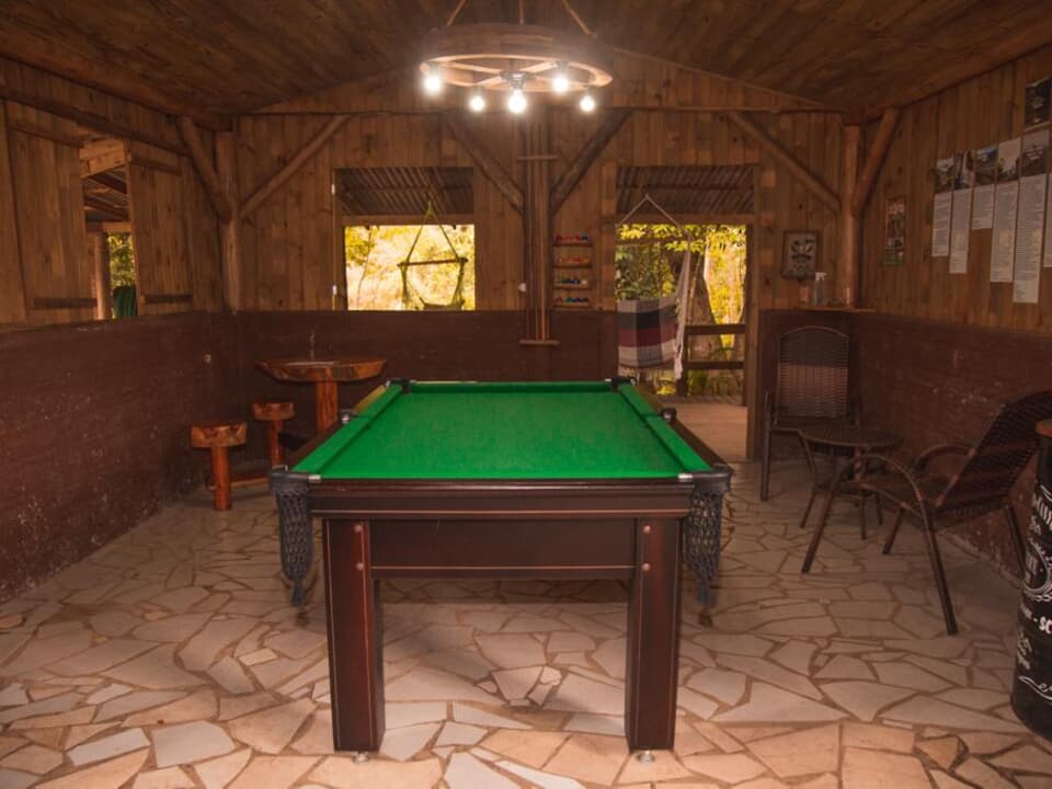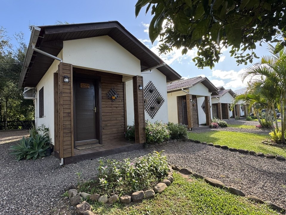 Nossa estrutura é completa e pensada para atender diferentes perfis de visitantes. Dispomos de chalés totalmente equipados, garantindo conforto, privacidade e comodidade. As áreas comuns oferecem diversas opções de lazer e convivência, como sala de jogos, espaço gourmet, decks, redário, quiosques, lago, mirante com balanço em formato de coração, além do acesso direto ao rio.