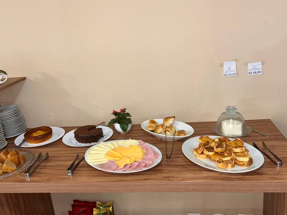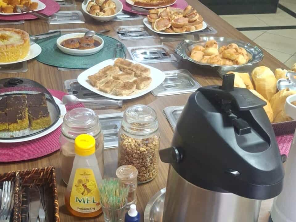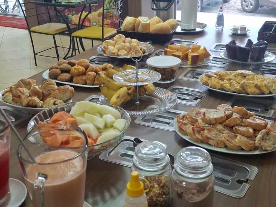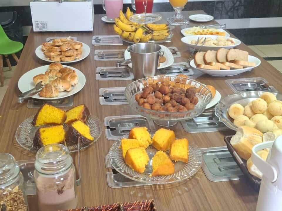 O Hotel Lago dos Encantos serve um café da manhã em estilo buffet.