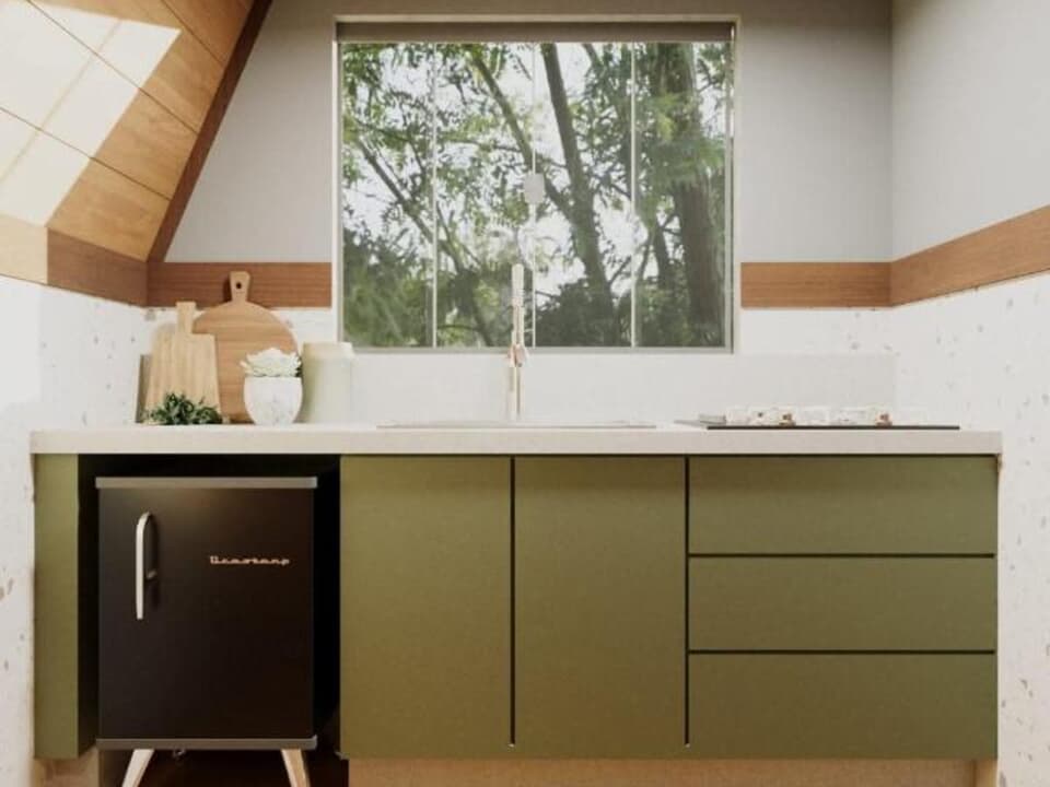 Cada chalé dispõe de uma linda vista, TV de tela plana (streaming gratuito), área de estar aconchegante, cozinha compacta totalmente equipada e banheiro privativo com, amenidades e secador de cabelo.