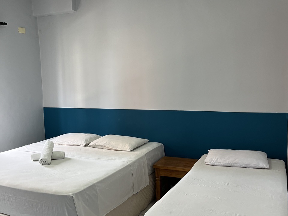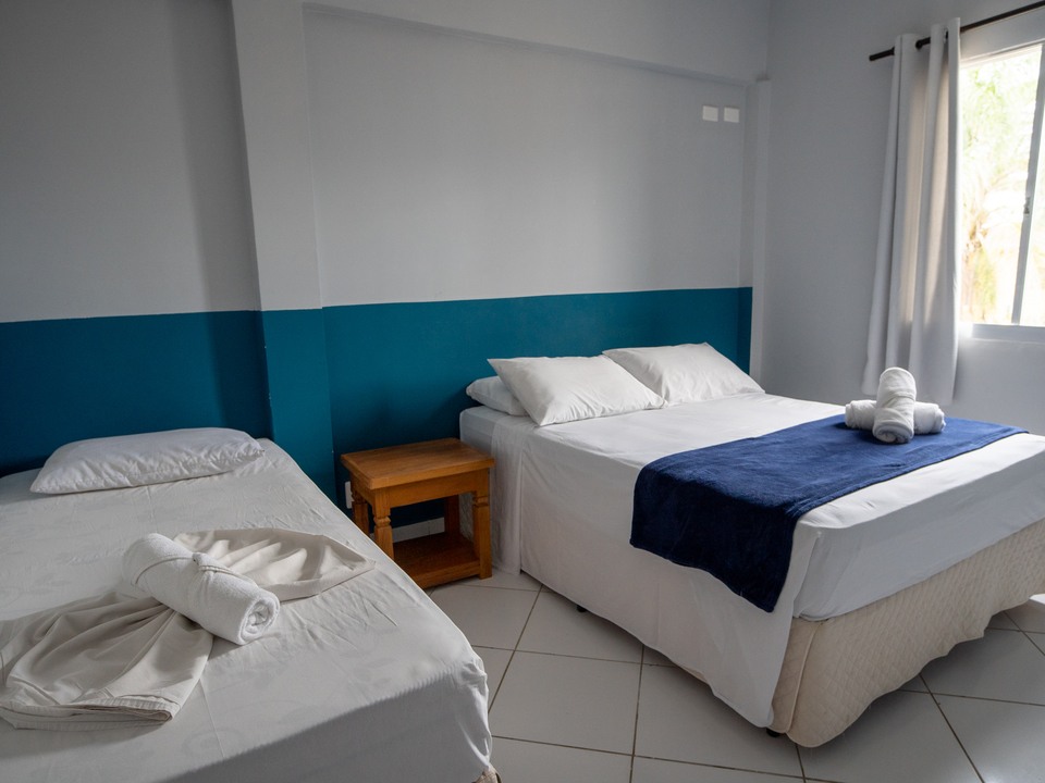 q. Oferecemos apartamentos: Duplos (1 cama de casal), Triplos (1 cama de casal e 1 cama de solteiro. A opção de 3 camas de solteiro deve ser solicitada pelo hóspede no momento da reserva) e Quádruplos (1 cama de casal e 1 beliche ).