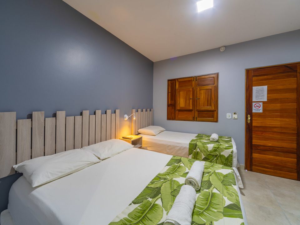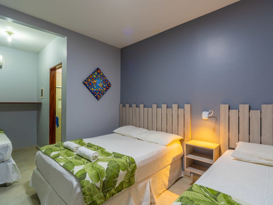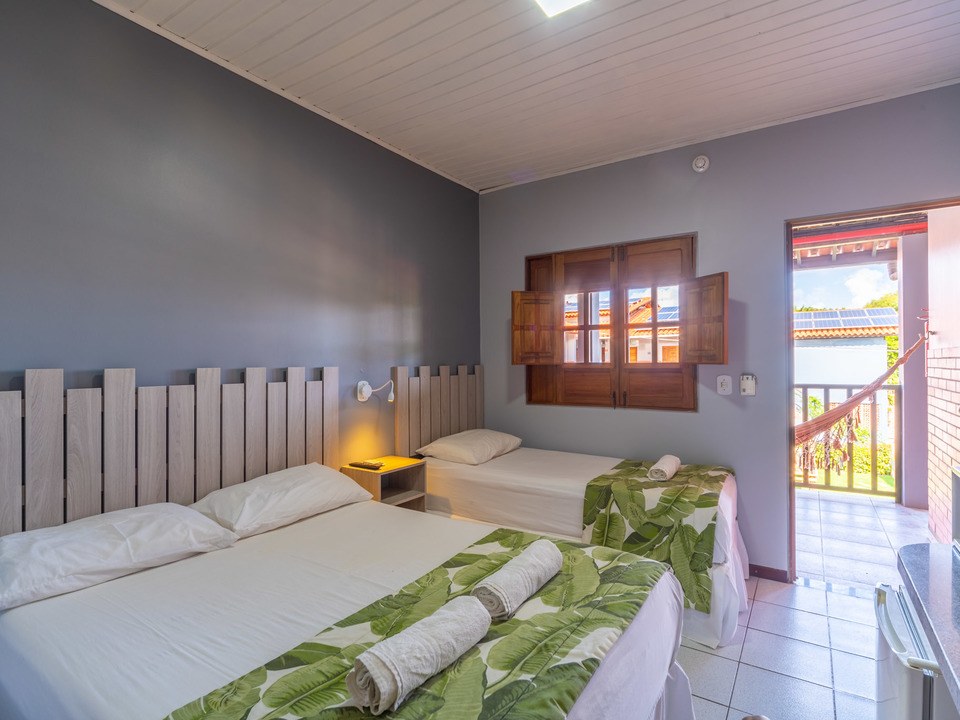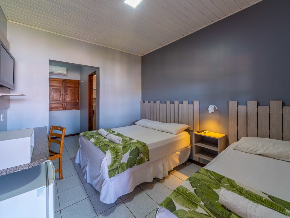 As acomodações dispõem de ar-condicionado tipo split,cama box com colchão de molas TV de tela plana, frigobar e chuveiro de água quente.